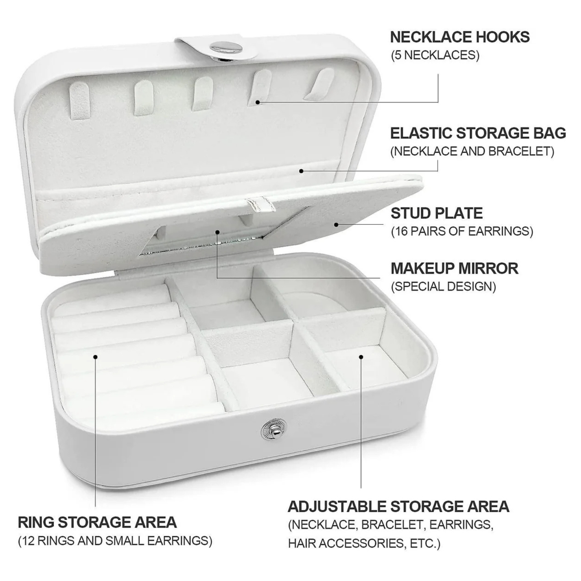 Safe storage of rings, earrings, necklaces, and bracelets